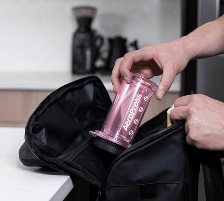 Die AeroPress Clear Pink ist kompakt, sodass Sie sie in Ihrer Tasche verstauen und unterwegs mitnehmen können. Schluss mit dem mittelmäßigen Kaffee im Hotel, im Büro oder an Ihrem Urlaubsort.