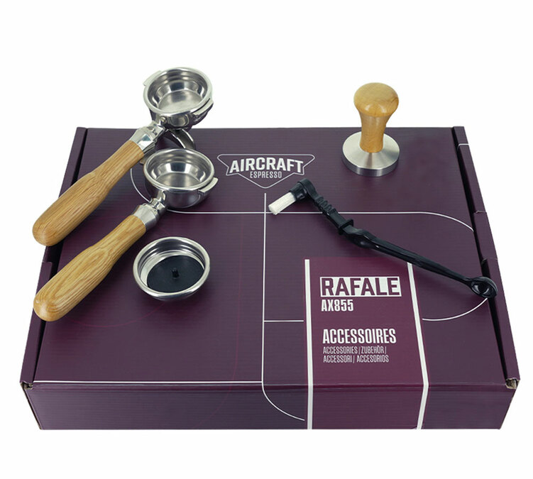 Die Rafale AX855 von Aircraft Espresso ist eine manuelle Semi-Pro-Espressomaschine, die eine Extraktionsgenauigkeit bietet, die professionellen Modellen in nichts nachsteht, und dabei im täglichen Gebrauch einfach zu bedienen ist. Ausgestattet mit einem doppelten Heizsystem (Edelstahlboiler mit PID + Dampfthermoblock) ermöglicht sie die gleichzeitige Zubereitung von Espresso und Milchschaum ohne Wartezeit. Die 58-mm-Brühgruppe, das integrierte Manometer und das einstellbare OPV geben Ihnen die vollständige Kontrolle über Ihre Extraktionen. Mit physischer Tastenoberfläche, mattschwarzer Edelstahlausführung und bottomless Filterhalterung ist alles vorhanden, um Ihre Fähigkeiten weiterzuentwickeln. Kostenlose Lieferung. 2 Jahre Garantie.