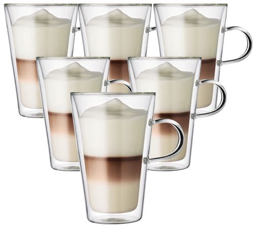 Sie sind auch eine schöne Bereicherung für Ihre Küche. Denn jedes Glas ist einzeln aus Borosilikatglas mundgeblasen, um einen Thermoeffekt zu erzeugen. So bleiben heiße und kalte Getränke länger perfekt temperiert. Keine verbrannten Finger und kein Kondenswasser mehr! Der praktische Henkel sorgt für einen angenehmen Griff und verhindert, dass Ihr Getränk herunterfällt.