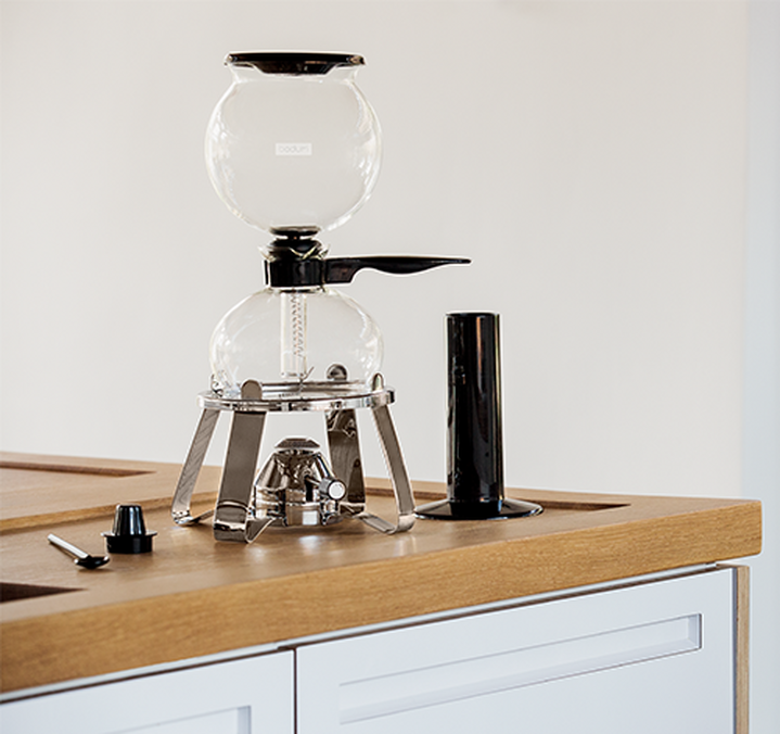 Ein Set mit dem berühmten Vakuum-Kaffeebereiter Bodum Pebo und einem Gasbrenner, der speziell für diesen Kaffeebereiter entwickelt wurde. Entdecken Sie alle Aromen Ihres Kaffees.