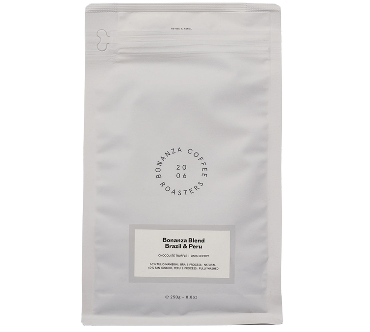 Entdecken Sie diese Bohnenmischung von Bonanza Coffee Roasters, die das Beste aus Brasilien und Peru vereint.