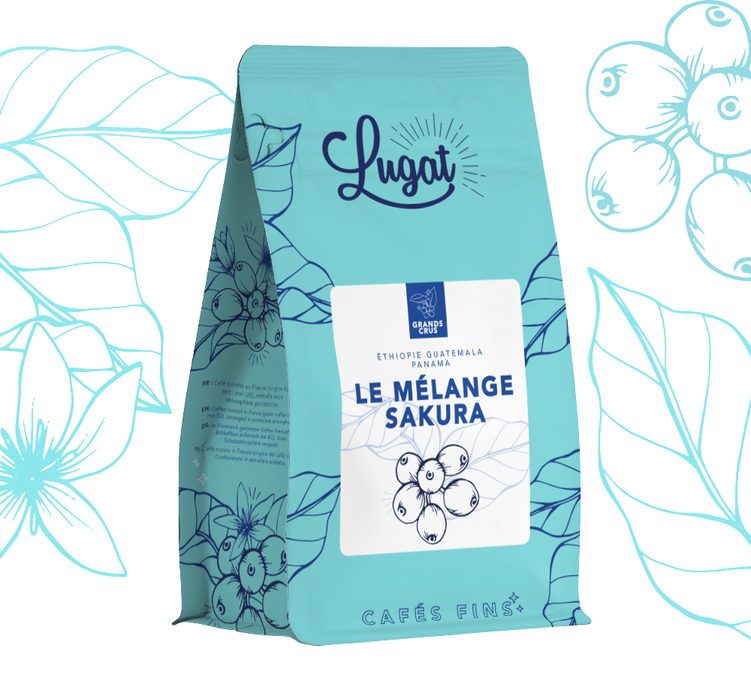 Entdecken Sie die Kaffeebohnen Sakura-Mischung von Cafés Lugat 250 gr