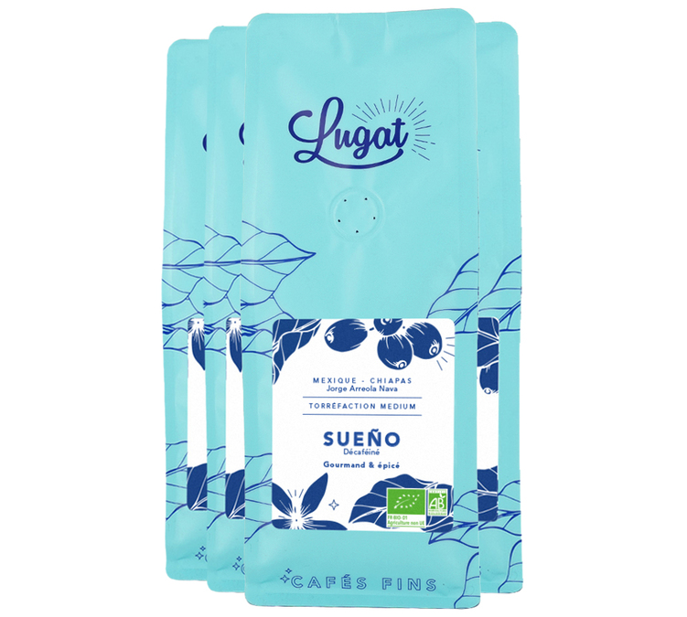 Cafés Lugat - Mexique Sueño - Bio-Kaffeebohnen entkoffeiniert 1 kg
