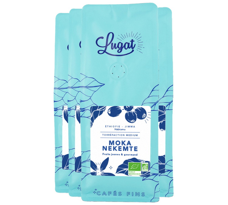 Cafés Lugat - Specialty Coffee Ethiopie Moka Nekemte - Bio-Kaffeebohnen 4x250 g