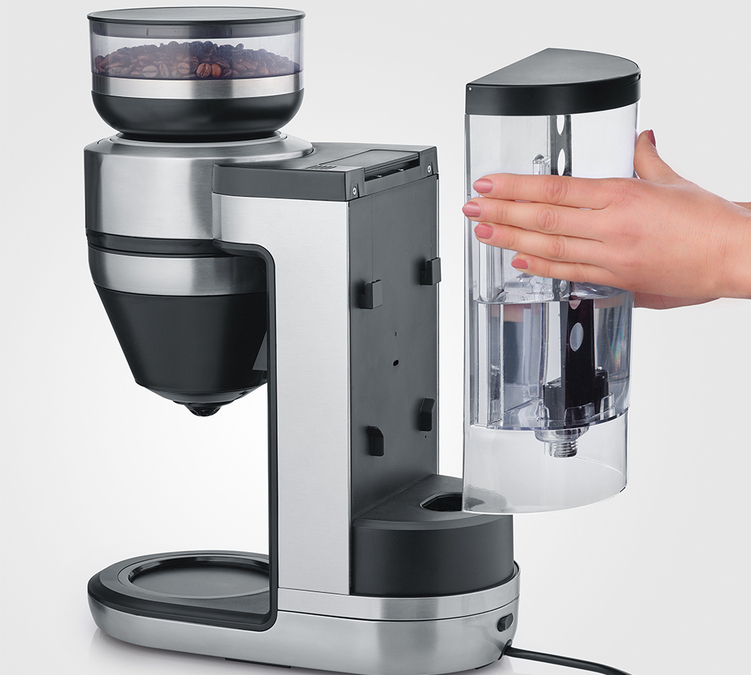 Für Liebhaber von frisch gemahlenem Kaffee verfügt der Kaffeebereiter über eine integrierte, leise Kaffeemühle, mit der die Kaffeebohnen gleichmäßig und ohne störende Geräusche gemahlen werden können. Diese Kaffeemühle in Profiqualität sorgt in Kombination mit der Kanne für guten Kaffee und besticht durch sein elegantes Aussehen und seine Transparenz, die ideal ist, um die verbleibende Menge zu kontrollieren.