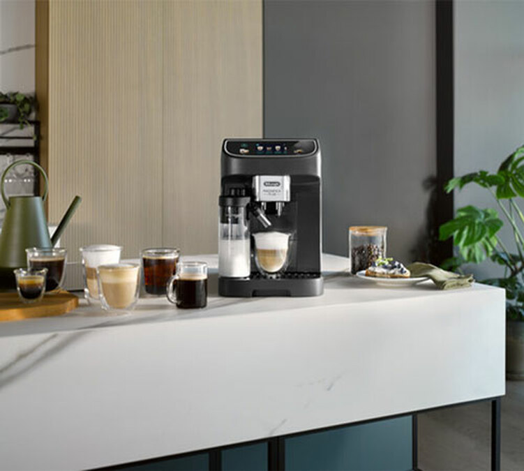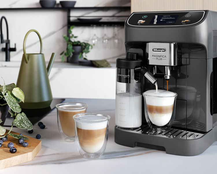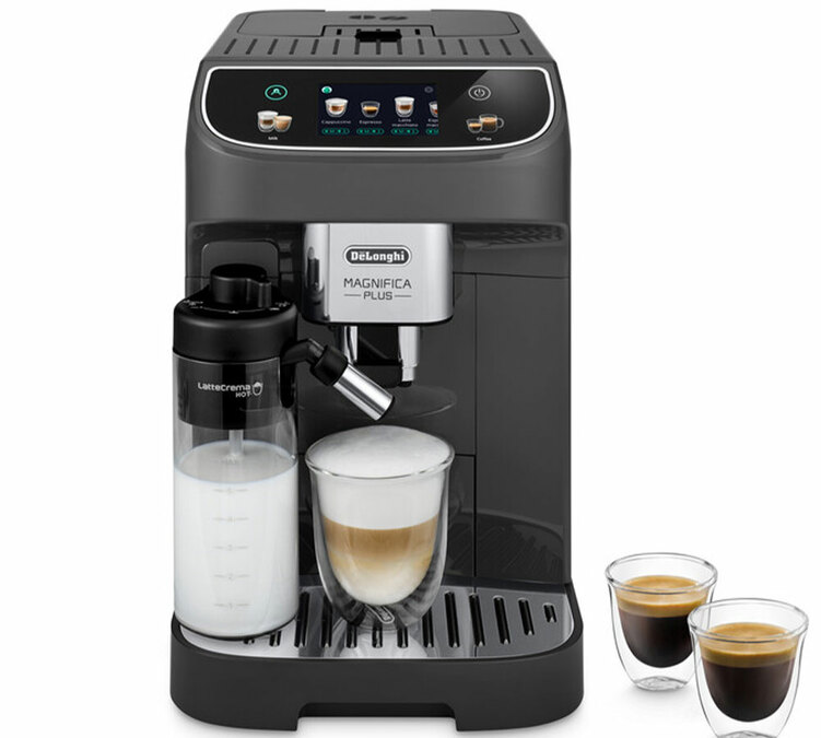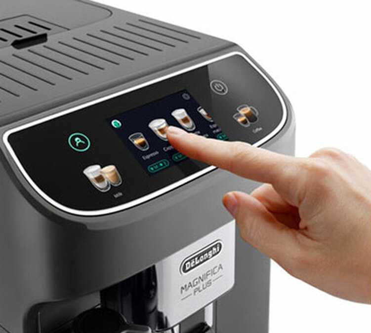 Die Kaffeemaschine Magnifica Plus bietet ein neues, moderneres Design. Ihr TFT-Touchscreen mit 3,5 Zoll ist für eine bequeme Bedienung leicht geneigt. Auf dem Display können 18 heiße und kalte Getränke ausgewählt werden. Jede Zubereitung kann in Bezug auf Stärke, Dauer und Temperatur individuell angepasst werden. Die Karaffe Hot LatteCrema ist in drei Konsistenzen erhältlich: fest, cremig oder leicht. Der Kaffeevollautomat ist mit seinen 4 personalisierbaren Benutzerprofilen perfekt für den Familiengebrauch geeignet. Mit ihren großen Behältern ist die Maschine autonom, der 1,9-Liter-Wassertank, der Kaffeesatzbehälter fasst 10 Kaffeekuchen und der Bohnenbehälter fasst 250g.