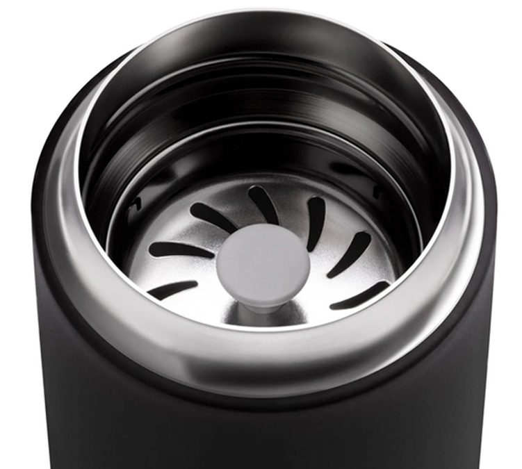 Der Becher ist mit einem Spritzschutz ausgestattet. Einfach zu installieren, einfach zu entfernen, so dass Sie mit Ihrem Becher in der Hand einen Spaziergang genießen können, ohne Gefahr zu laufen, sich zu verbrennen oder einen Fleck zu bekommen.