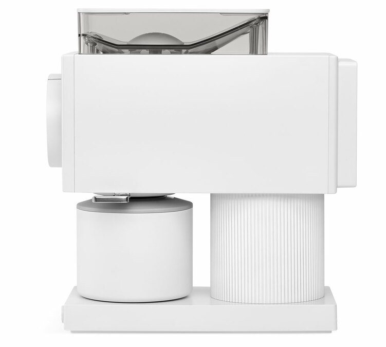 Die weiße ODE Brew Grinder Gen 2 ist mit einer Technologie ausgestattet, die statische Elektrizität verhindert.