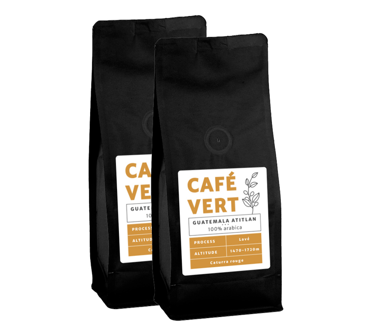 Der grüne Kaffee Guatemala Region Atitlan gewaschen ist für alle Arabica-Liebhaber gedacht. Dieser 100%ige Arabica-Kaffee aus einer Region in Guatemala(Atitlan) wird zwischen 1470 und 1720 m Höhe angebaut, bevor er gewaschen aufbereitet wird. Bei der Ankunft genießen Sie eine gierige und würzige Tasse von großer Intensität. Inhalt: 2 x 500 g.