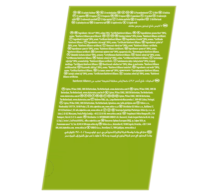 Lipton engagiert sich seit mehreren Jahren dafür, dass der Tee in seinen Beuteln aus Anbaugebieten stammt, in denen die sozialen, wirtschaftlichen und ökologischen Bedingungen für die Bauern so gut wie möglich sind. Dank dieses Engagements ist dieser Tee Rainforest Alliance-zertifiziert.