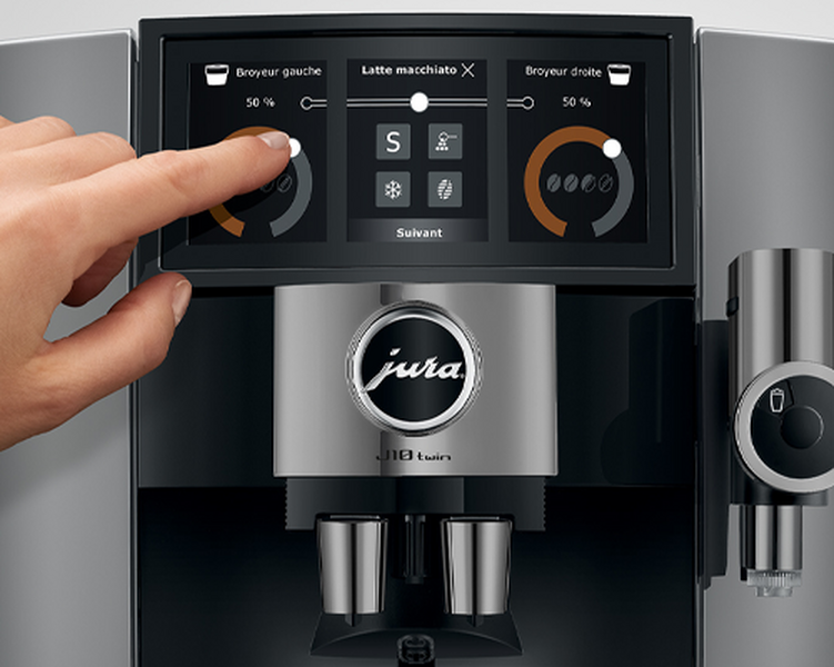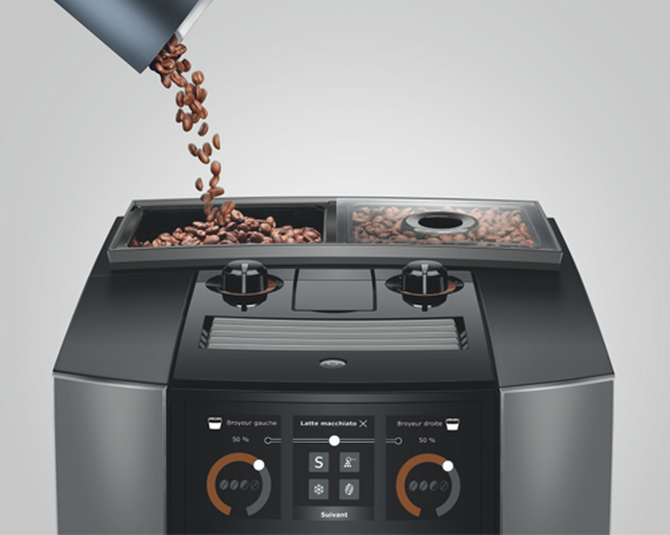 Die integrierte Kaffeemühle ist vom Typ P.A.G.3+ (Stahl): zwei separate Kaffeemühlen für die beiden Bohnenbehälter sorgen für eine optimierte und konstante Mahlung. Die Benutzeroberfläche besteht aus einem Panorama-Touchscreen + der mobilen App J.O.E. für die Fernsteuerung. Damit können auch zwei Tassen gleichzeitig zubereitet werden. Für Milchgetränke verwendet die Maschine einen Milchschlauch mit automatischer „OneTouch”-Reinigung. Ein Energiesparmodus (E.S.M.©) ist integriert, um den Verbrauch im Standby-Modus zu reduzieren.