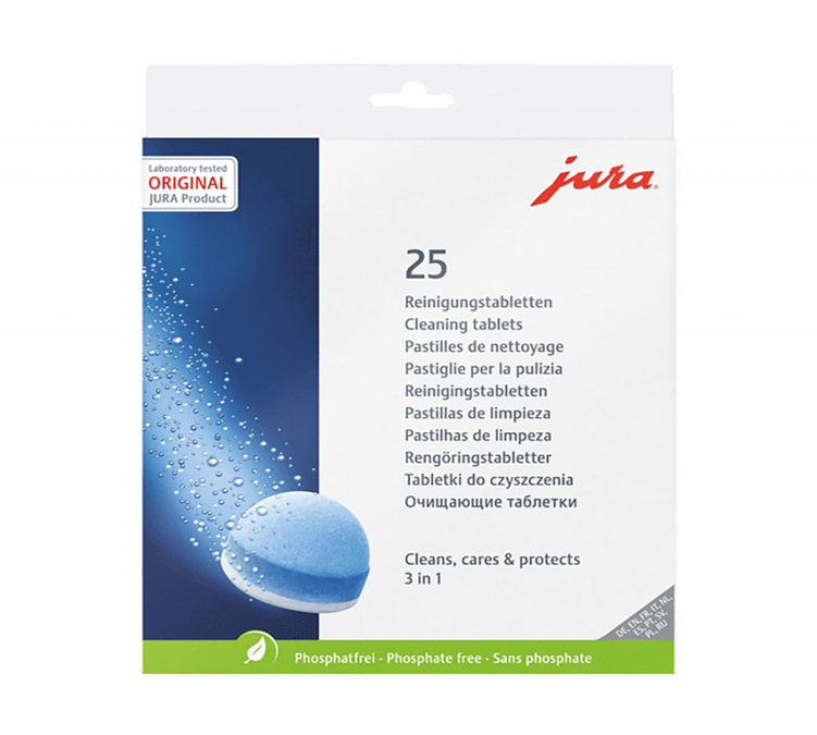 - 6 Reinigungstabletten + 9 Entkalkungstabletten