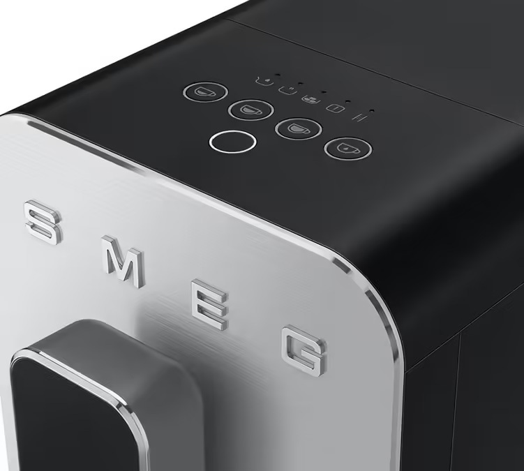 Dieser kompakter Kaffeevollautomat von Smeg bietet perfekten Bedienungskomfort dank seiner flachen Tasten auf der Oberseite der Maschine. Er bietet zwei Menüs für eine einzigartige Verwendung jeder Taste. Diese Menüs unterscheiden sich durch einen Farbwechsel der Leds: weiß für das erste Menü, orange für das zweite.