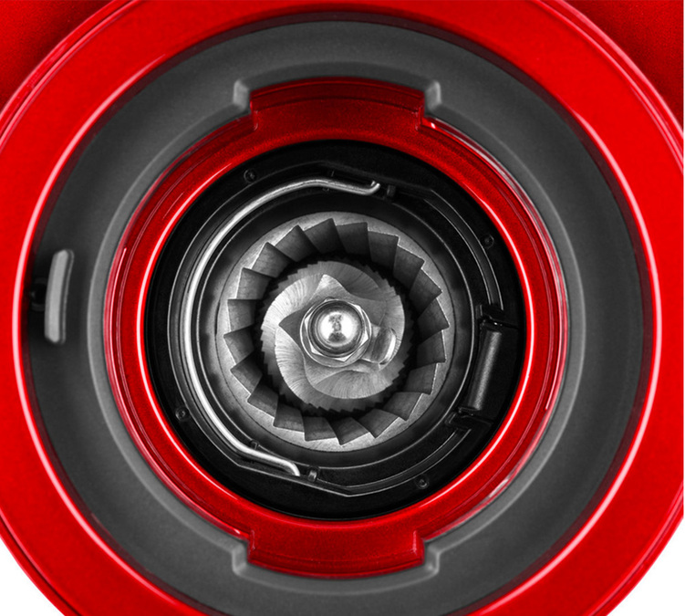 Der Trichter der Kaffeemühle KitchenAid Artisan 5KCG8433ECA lässt sich leicht herausnehmen, wobei das System geschlossen bleibt, um Verschwendung zu vermeiden, falls Sie sich entscheiden, die Kaffeebohnen zu wechseln, wenn noch welche im Trichter sind. Der obere Mahlstein lässt sich mit einem Griff zum Anheben ganz einfach herausnehmen. So können die Mahlsteine schnell gereinigt werden.