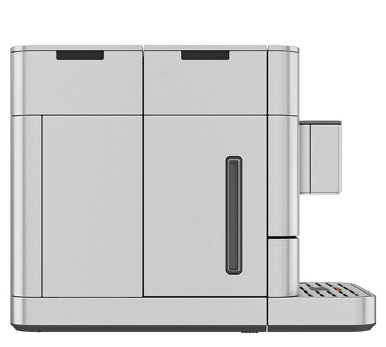 Auf der Oberseite der Maschine ermöglichen zwei Klappen einen einfachen Zugang zum Bohnenbehälter, zur Ausgabeklappe und zum Wasserbehälter. Die Maschine signalisiert optisch, wenn diese Behälter aufgefüllt werden müssen. Der mit einer hermetischen Dichtung versehene Deckel des Bohnenbehälters bewahrt das Aroma des Kaffees. Sie können Ihren gesamten Beutel Kaffee einfüllen, ohne dass die Kaffeebohnen beschädigt werden.