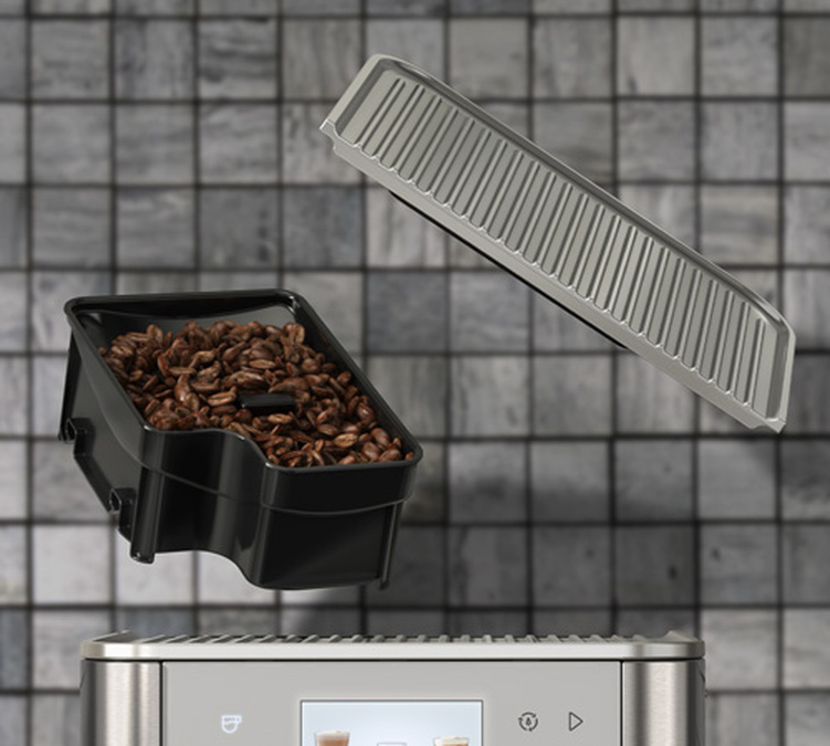 Zu den hochwertigen Ausstattungsmerkmalen gehört natürlich auch eine Dichtung unter dem Deckel des Bohnenbehälters, die die Kaffeebohnen vor Oxidation schützt und für eine bessere Geräuschdämmung während der Extraktion sorgt. Unter dem Deckel des Bohnenbehälters befindet sich außerdem eine praktische Mahlwerk-Entriegelung für die Zubereitung von entkoffeiniertem Kaffee.