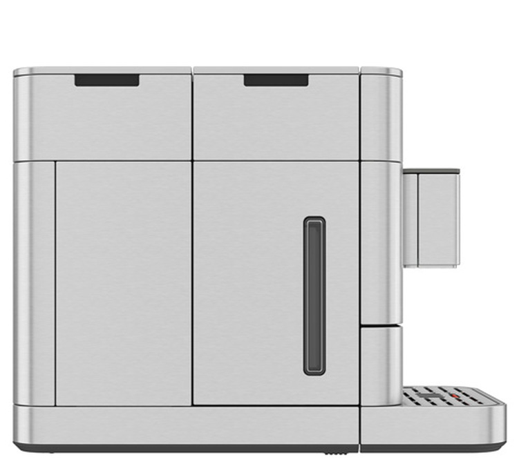 Bei der Sortiment KF8 beeindruckt zunächst das große Display. Die einfache Bedienung, die verschiedenen Einstellungen für jedes Getränk und die hochwertige Verarbeitung überzeugen. Das Design und das Gehäuse der Maschine sind ebenfalls bemerkenswert und bieten erstklassige Leistungen. Das Gehäuse besteht aus Edelstahl, das Logo der Marke ist dezent auf der Tassenablage eingraviert – alles sehr geschmackvoll.