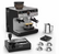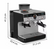 Zubehör: Siebträger 58 mm, eine Tamperstation, Silikonbasis mit Kaffeesatzbehälter und Platz für Tamper, Mikrofasertuch, 300-ml-Milchkännchen aus Edelstahl mit Skala, Tamper, einfache und vorgepresste 1- und 2-Tassen-Filter, Tassenaufsatz, Trichter, Filterpatrone und Reinigungsset (Reinigungsbürste und Silikonscheibe).