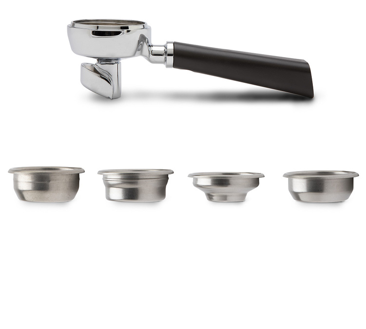 Siebträger mit Doppelauslauf Modell CoffeeSlide mit 4 Filtern, für Lelit VIP Line Espressomaschinen.
