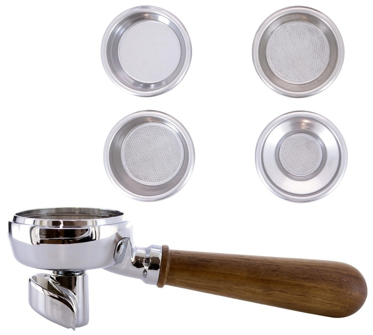 Lelit Siebträger CoffeeSlide 2 Ausläufe Griff aus Walnussholz mit 4 Lelit-Filtern