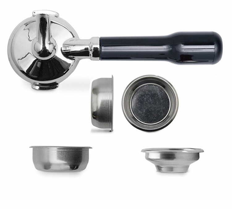 Offizielles Lelit-Set: Standard-Siebträger ein Auslauf mit zwei IMS-Filtern. Für Espressomaschinen mit 58 mm Brühgruppe.