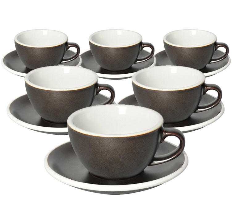6 Cappuccinotassen und Untertassen Egg 200 ml Gundpowder  - Loveramics