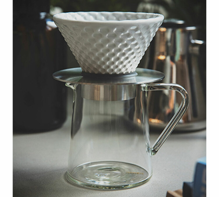 Die Loveramics-Karaffe passt zu den Drippern der Marke oder zu Drippern des Typs V60, indem sie den hier passenden Metallsockel für Ihre Extraktion verwenden.