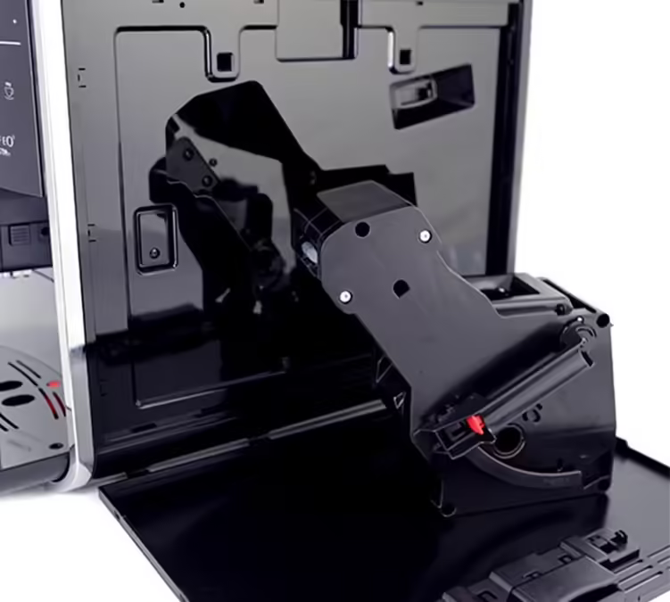 Die Melitta Kaffeevollautomat Caffeo Barista TS Smart verfügt über ein exklusives Kaffeeauswahlsystem, mit dem Sie schon bei der ersten Extraktion von einer Kaffeesorte auf eine andere (die sich im Doppelbehälter befindet) umschalten können. Die Klappen unter den beiden Behältern sind geschlossen und verhindern so, dass die Kaffeebohnen in den Trichter über den Mahlsteinen der Kaffeemühle laufen.
