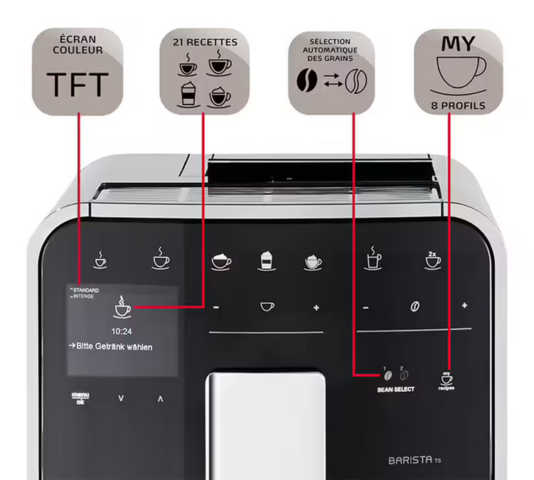 Melitta bietet jetzt den Caffeo Barista TS Smart an, der nicht nur ein elegantes Design hat, sondern auch mit seinem Bedienungskomfort beeindruckt. Mit seinen 21 Rezepten bietet der Melitta Caffeo Barista TS Smart eine unvergleichliche Vielfalt an Geschmäckern, die Sie zu Hause genießen können.