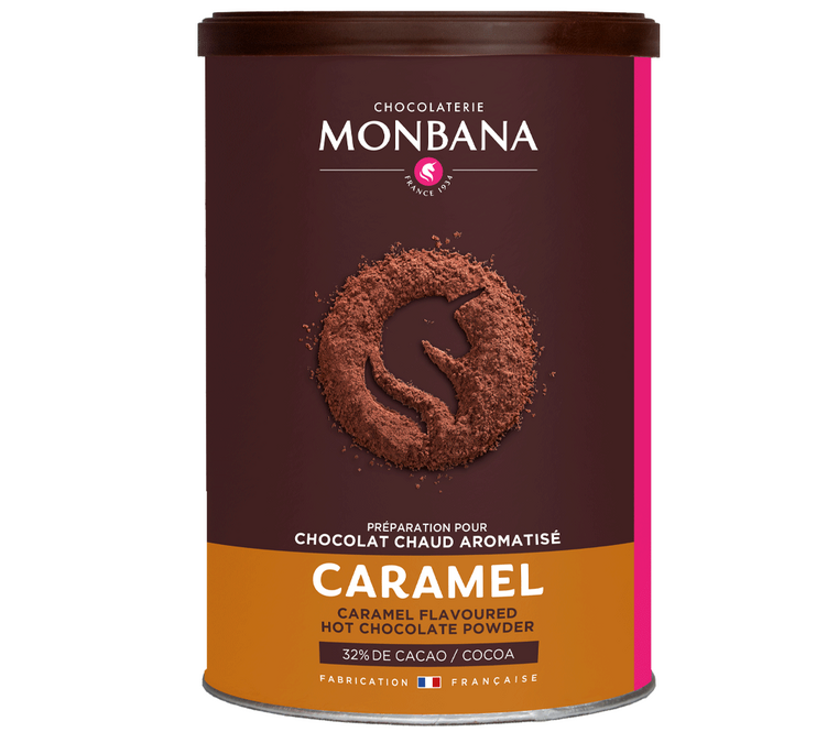 Eine originelle Idee, um Ihrer Schokolade einen Karamellgeschmack zu verleihen. Monbana bietet in einer sehr schönen Dose eine erstaunliche Reihe von aromatisiertes Kakaopulver an.