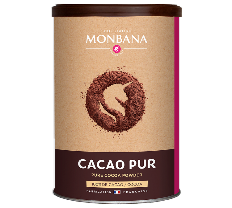 Entdecken Sie das köstliche Kakaopulver Cacao Pur des französischen Chocolatier Monbana. Monbana Pure Cocoa 100% Kakao ist gut löslich und schmeckt mit warmer Milch herrlich schokoladig. Aufgegossen mit kalter Milch ist es ein erfrischender Genuss.  Das extrafeine Pulver eignet sich hervorragend für Backwaren und zur Zubereitung von Getränken.