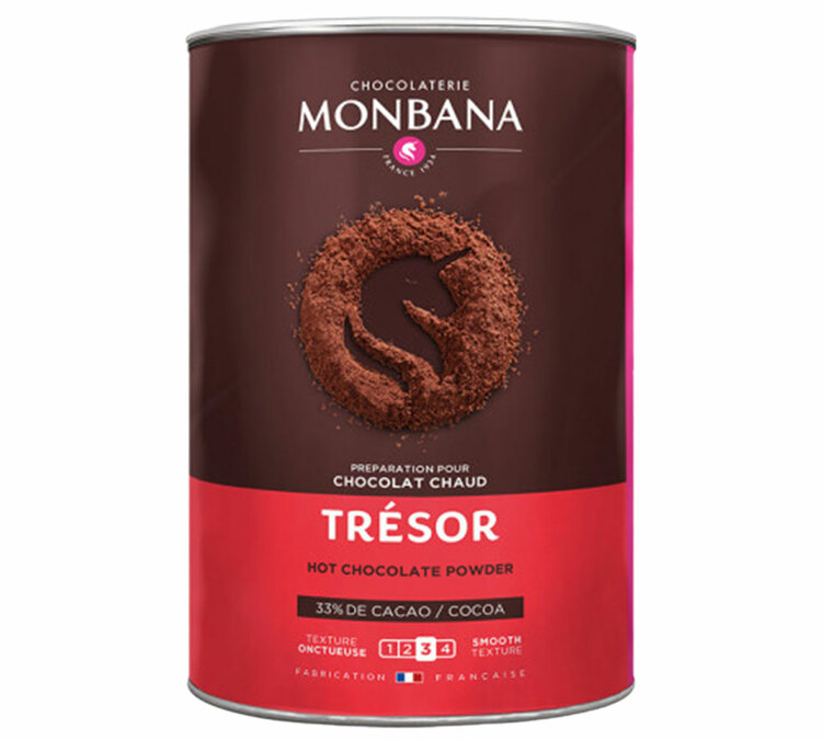 Trésor au chocolat ist ein Kakaopulver der Marke Monbana, mit dem man eine schaumige und cremige heiße Schokolade herstellen kann.