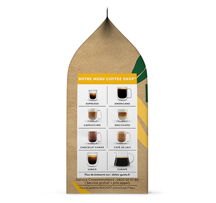 Ihre Kaffeemaschine erkennt automatisch Ihre Neo Kaffeepads und passt die Extraktion entsprechend an (lange Extraktion für diesen Kaffee), so dass Sie einen perfekt zubereiteten Kaffee genießen können, der einem guten Coffeeshop würdig ist!  Verwöhnen Sie sich mit den Grande Nescafe® Dolce Gusto® Neo Kaffeepads.