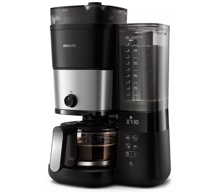 Die All-in-One-Funktion dieser Philips-Kaffeemaschine ermöglicht es, Kaffee zuzubereiten und ihn dann direkt in seine 1,2-l-Glaskanne zu gießen, heiß und servierfertig für Ihre Gäste.