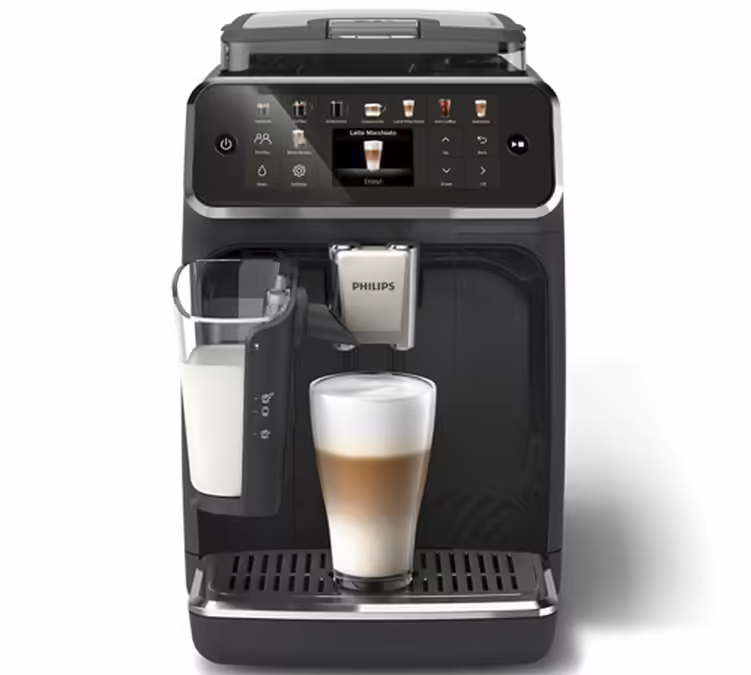 Die neueste Generation der automatischen Kaffeemaschinen LatteGo von Philips bietet Ihnen die Möglichkeit, auf einfache Weise köstliche Getränke auf Kaffee- und Milchbasis zu genießen. Die automatische Maschine mit Mahlwerk EP5541/50, erhältlich in Schwarz-Chrom, bietet nicht weniger als 22 verschiedene Getränke, die alle direkt über das große Touch-Bedienfeld ausgewählt werden können. Ausgestattet mit hochwertigen Oberflächen und einem passiven Tassenwärmer bietet diese Maschine den Vorteil einer „Extra Shot”-Funktion für einen noch intensiveren Espresso. Darüber hinaus wird sie kostenlos geliefert und enthält zwei Packungen Kaffeebohnen gratis + 2 kleine Kaffeegläser.