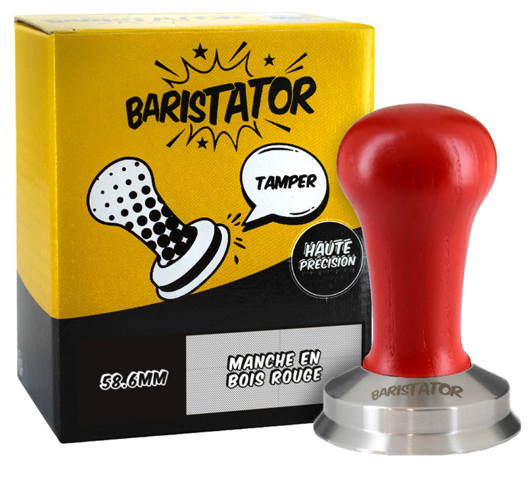 Der Baristator-Tamper ist einer der genauesten auf dem Markt. Er hat einen Durchmesser von 58,6 mm und einen Griff aus rotem Holz mit einer Basis aus rostfreiem Stahl. Seine innovative Form minimiert den Verlust von Kaffeemahlung und macht Ihr Ergebnis perfekt.