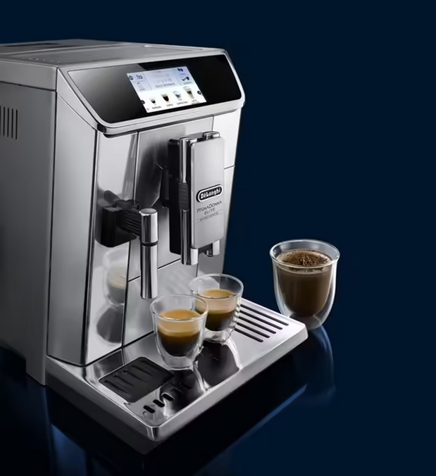Der smarte Kaffeevollautomat DeLonghi PrimaDonna Elite ECAM 650.85MS verfügt über ein außergewöhnliches Design: Sein Gehäuse ist eine perfekte Kombination aus glänzendem und gebürstetem Edelstahl, die seinen klaren und eleganten Stil hervorhebt. Eine vernetzte Kaffeemaschine