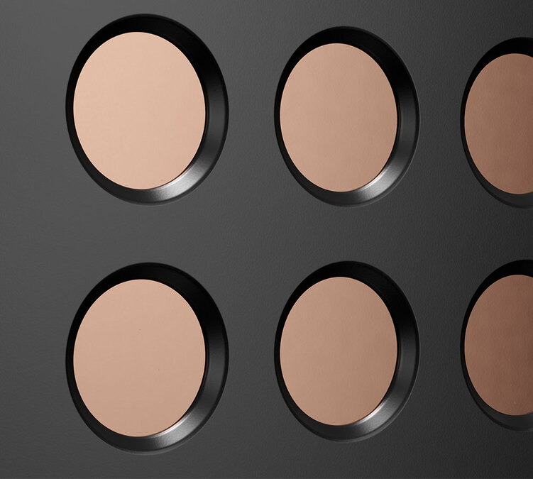 Das Gehäuse besteht aus schwarzem Edelstahl mit Kupfereinsätzen.