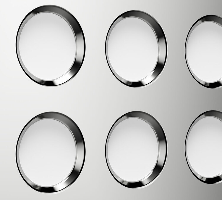 Die markanten Kreise an den Seiten der Maschine wurden durch eine Vertiefung hervorgehoben, die ihnen eine dreidimensionale Qualität verleiht.