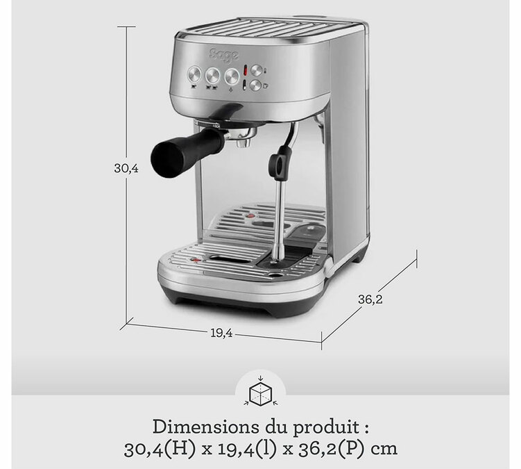 Pflege: Um die Lebensdauer Ihrer Sage Bambino Plus Espressomaschine zu verlängern und ein besseres Tassenergebnis zu erzielen, sollten Sie einen Wasserfilter (oder bereits gefiltertes Wasser) verwenden. Vergessen Sie nicht, Ihr Gerät gemäß den Empfehlungen der Marke zu entkalken (siehe Bedienungsanleitung) und das Zubehör regelmäßig zu reinigen. Finden Sie alle SAGE-Pflegeprodukte.