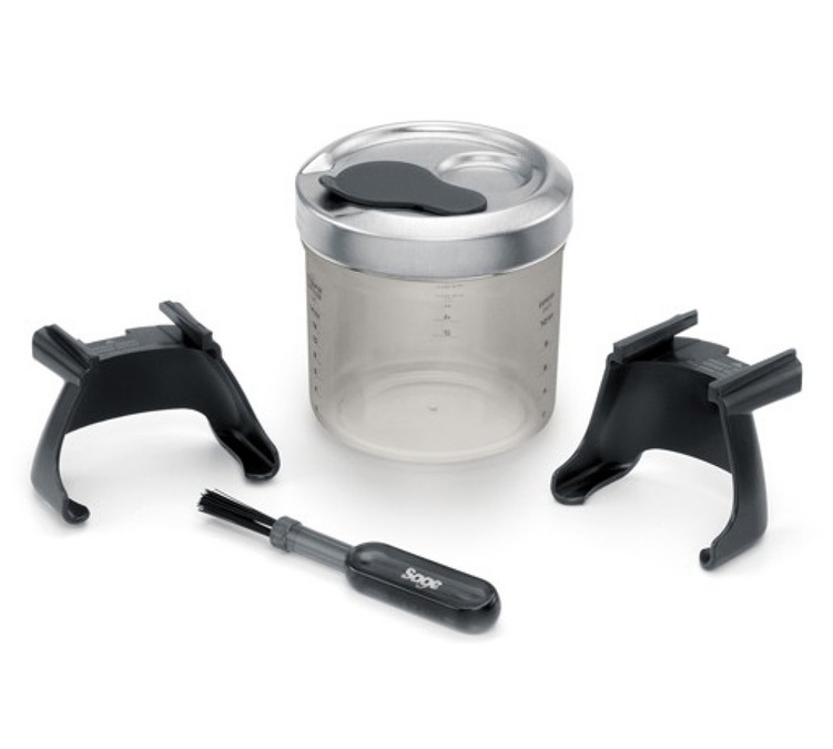 Diese Sage-Kaffeemühle verfügt außerdem über Stifte zum Befestigen des Filterträgers Ihrer Siebträgermaschine und einen geeigneten Behälter zum Auffangen des Mahlguts (z. B. für Filterkaffee).