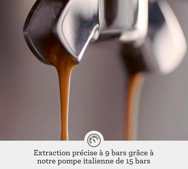 Pflege: Um die Lebensdauer Ihrer Sage Espressomaschine zu verlängern und ein besseres Tassenergebnis zu erzielen, sollten Sie eine Filterkartusche (oder bereits gefiltertes Wasser) verwenden. Vergessen Sie nicht, Ihr Gerät gemäß den Empfehlungen der Marke zu entkalken (siehe Bedienungsanleitung) und das Zubehör regelmäßig zu reinigen.
