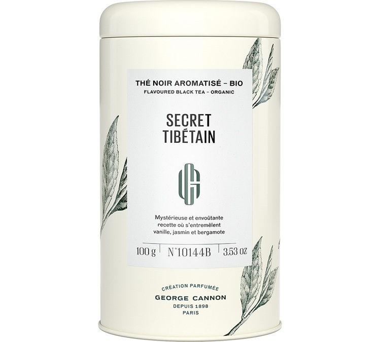 Entdecken Sie den berühmten Tee Secret de Tibétain bio von George Cannon neu. Diese Teemischung aus schwarzem Tee aus China und grünem Tee mit Jasminblüten aus China wird hier mit köstlichen Noten von Vanille, Bergamottenoten, Zimt und Lavendelblüten verfeinert.