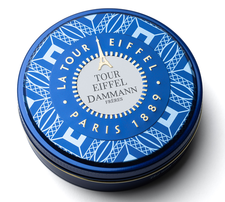 Entdecke den schwarzen Tee Eiffelturm von Dammann Frères in einer Mini-Packung aus Metall