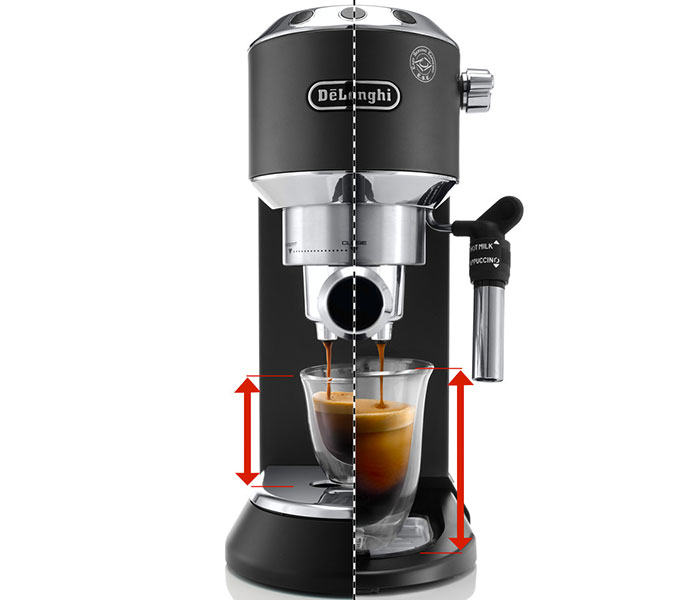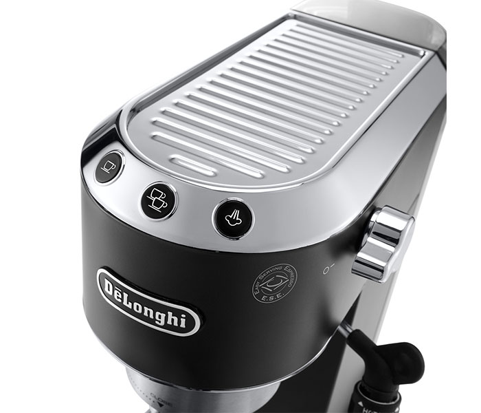 Die Delonghi Dedica EC685.BK ist eine 14,9 cm breite Siebträgermaschine. Sie passt mit ihrer eleganten Silhouette und ihrem Design in jeden Raum und ihre matte Farbe passt pefekt in jede moderne Küche.