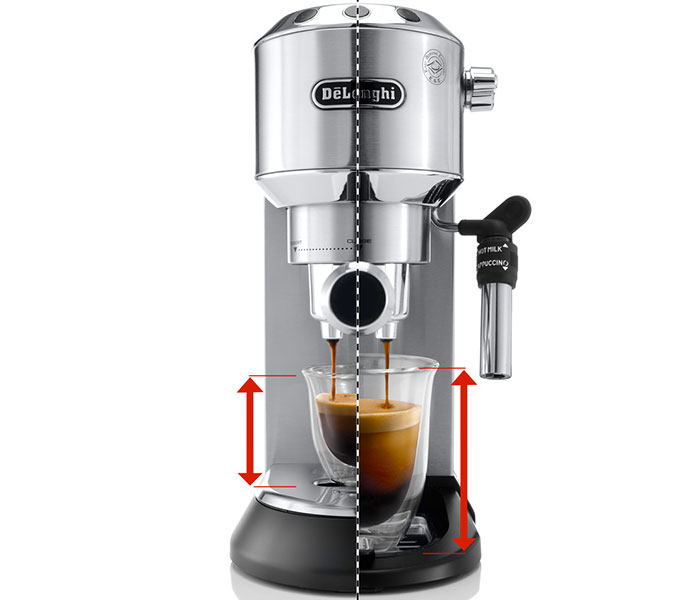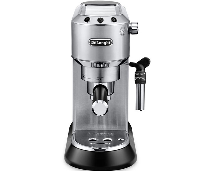 Die Delonghi Dedica EC685.M ist eine 14,9 cm breite Siebträgermaschine. Sie passt mit ihrer eleganten Silhouette und ihrem Design in jeden Raum und ihre matte Farbe passt pefekt in jede moderne Küche.