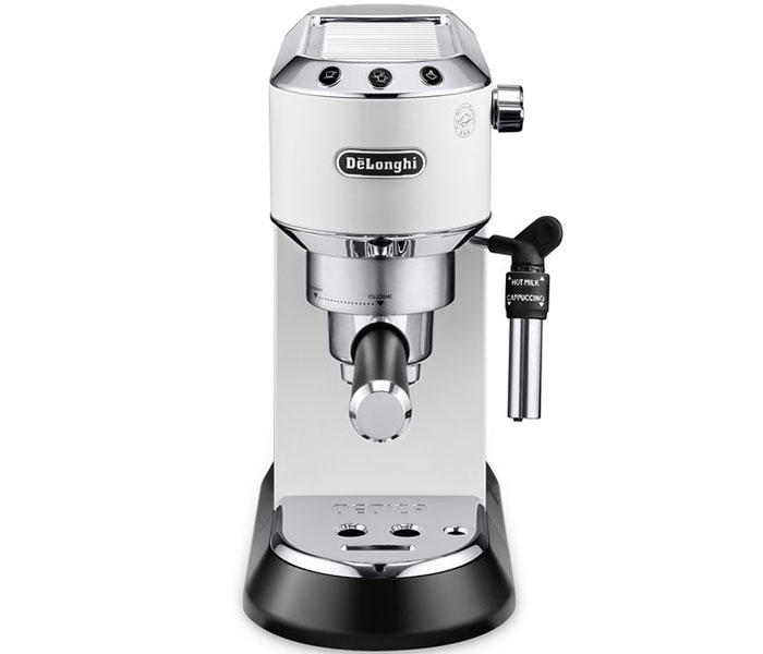 Die Siebträgermaschine Dedica EC 685.W weiß von DeLonghi ist design orientiert und ultrakompakt, sie kann sowohl mit ESE-Pads als auch mit gemahlenem Kaffee verwendet werden. 2 Jahre Garantie