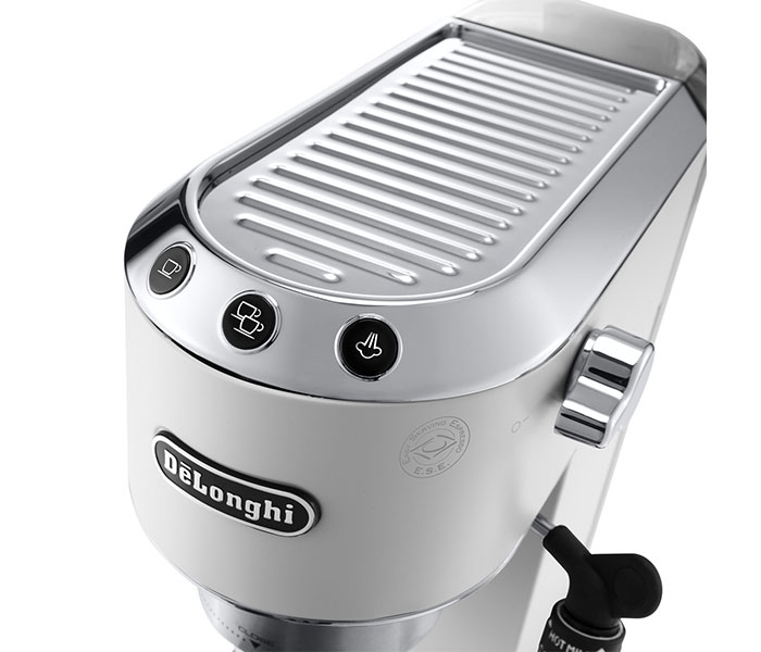 Die Delonghi Dedica EC685.W ist einfach zu bedienen und verfügt über 3 hintergrundbeleuchtete Tasten, ein Selbstansaugsystem, das die Maschine immer einsatzbereit hält, sowie über ein Tassenwärmfach, das die Wärme des Thermoblocks nutzt, um die Temperatur der Tassen zu erhöhen.