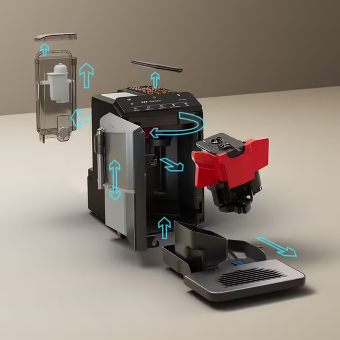 Die EQ300 TF305E04 verfügt über das Intelligent Heating System, das nur die Wassermenge erhitzt, die für einen hochwertigen Espresso notwendig ist, und nur diese Wassermenge.