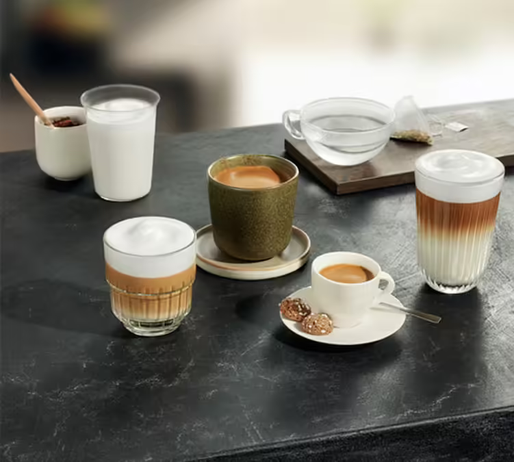 Bereiten Sie mit dem EQ500 köstliche Milchgetränke wie Cappuccino und Latte Macchiato zu.